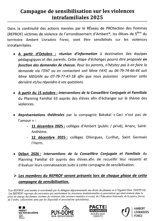 Flyer à destination des 5ème les sensibilisant sur les violences intrafamiliales