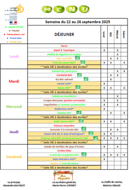 MENU DU 22 AU 26 SPETEMBRE 2025