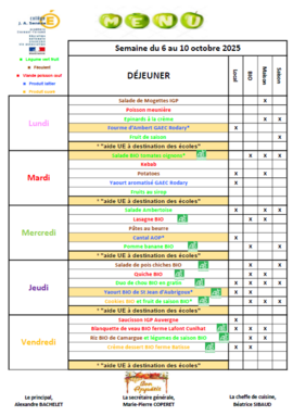 MENU DU 6 AU 10 OCTOBRE 2025