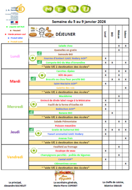 MENU DU 5 AU 9 JANVIER 2026